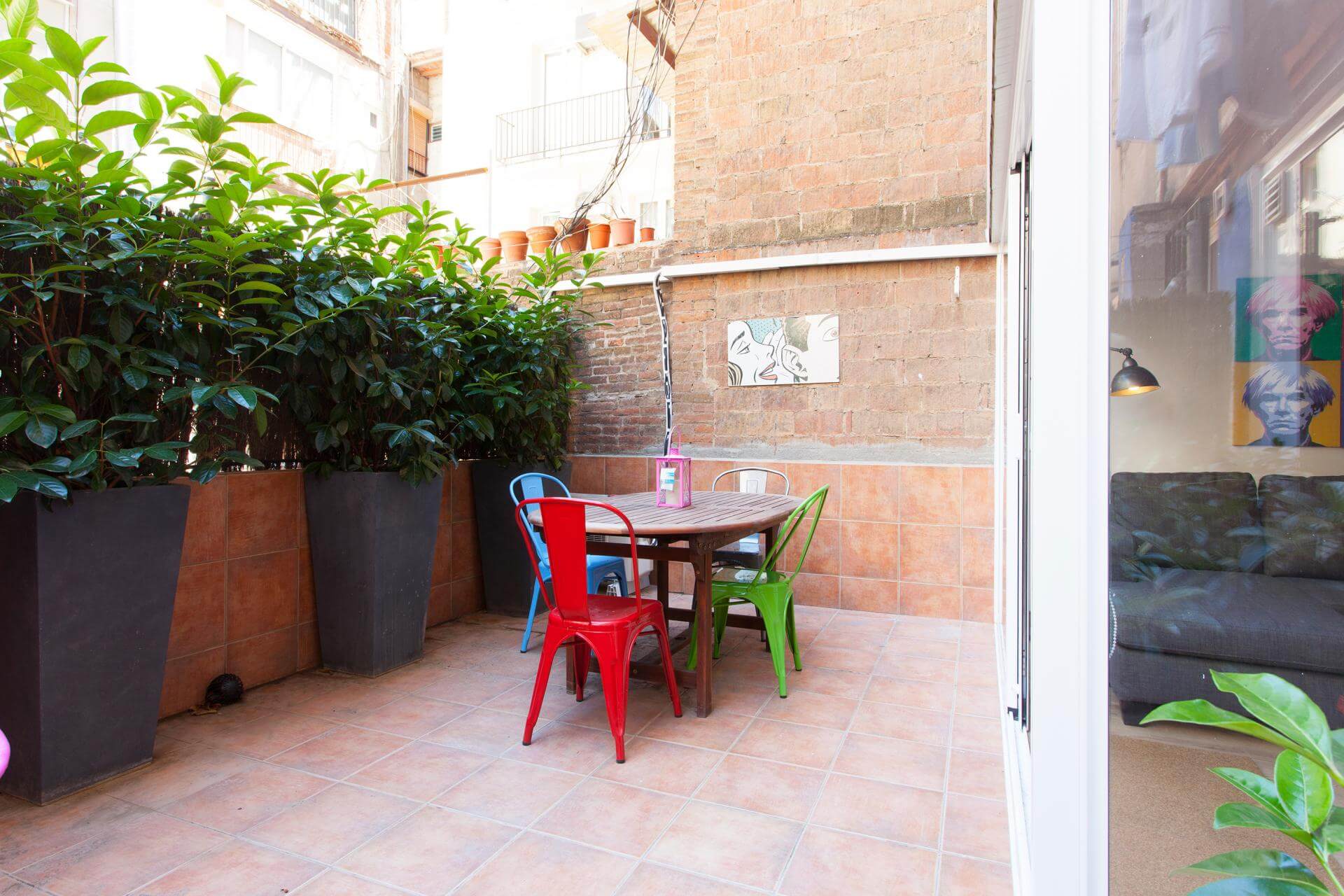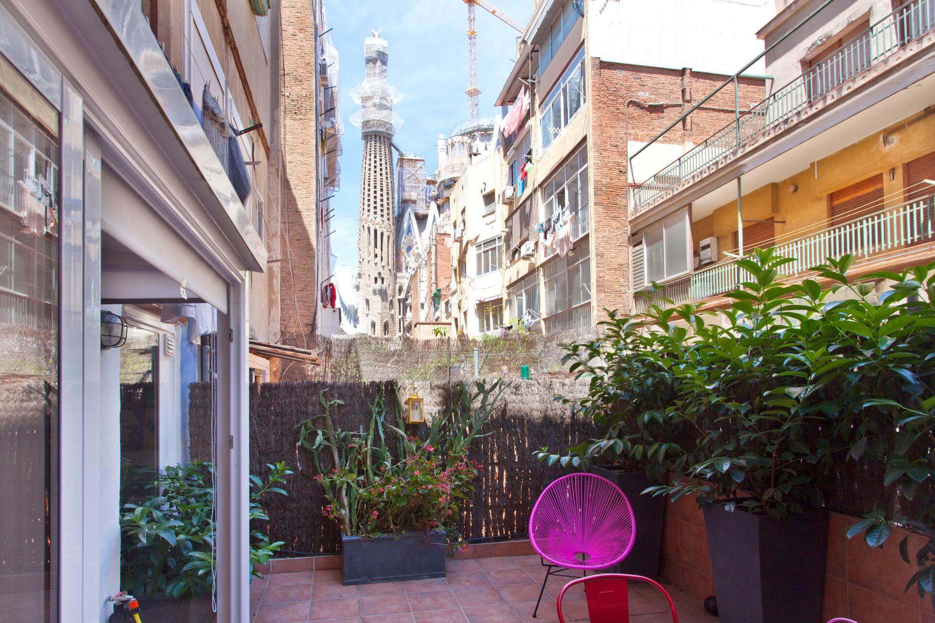 Seating for 4, wooden dining table, mature plants and views of SagradaFamilia!